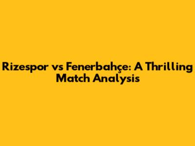 Rizespor Vs Fenerbahçe: A Thrilling Match Analysis